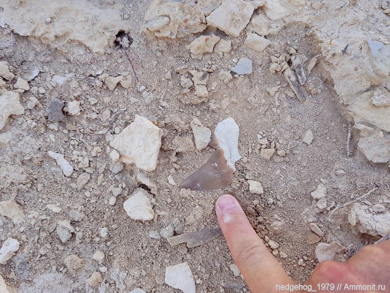 Шорымская свита, Местонахождение Усак, п-ов Мангышлак; найден 21.09.2017. Возраст: Кайнозой, Палеоген, Эоцен, Бартон (41-38 млн. лет). Высота зуба: 55 мм.