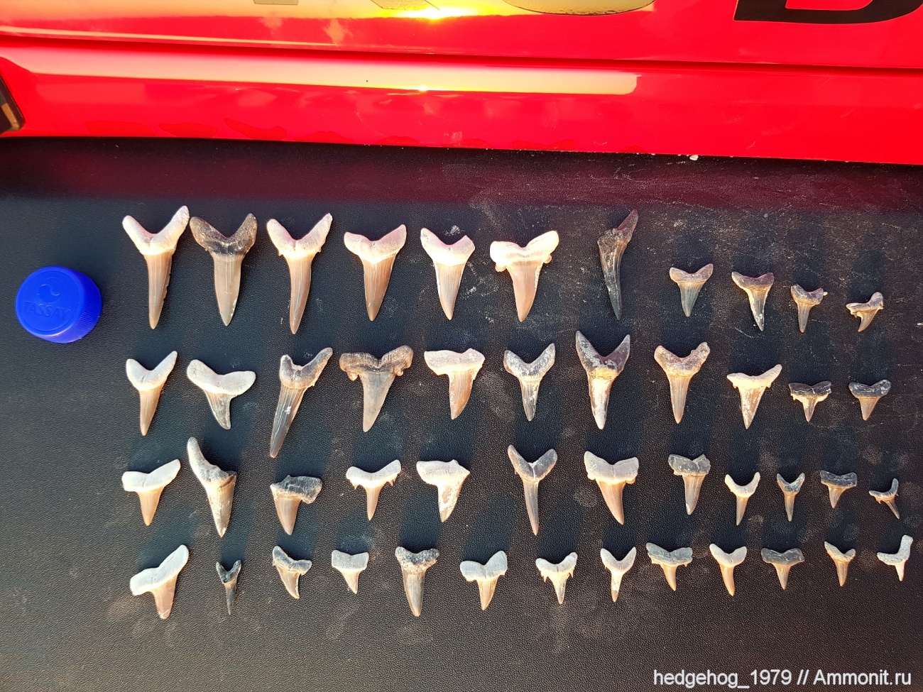 Все количество собрано мной на незначительном участке отложений длиной всего около 80 метров за час поисков (пока не начало темнеть). Шорымская свита, Местонахождение Усак, п-ов Мангышлак; Дата находок: 21.09.2017. Возраст: Кайнозой, Палеоген, Эоцен, Бартон (41-38 млн. лет).