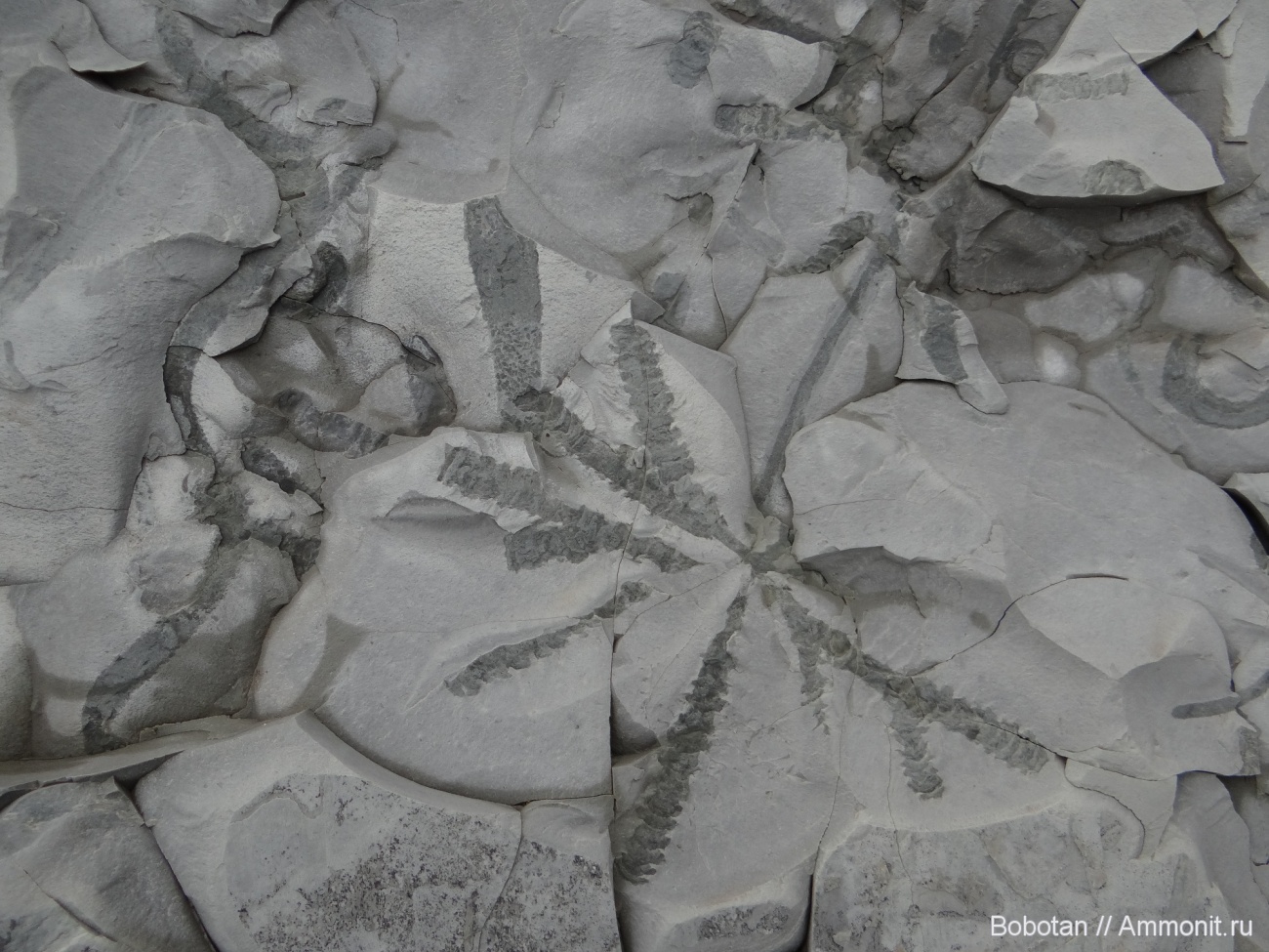 Cladichnus fischeri-следы червей(напоминают расходящихся лучи),Ophiomorpha-след ракообразных(на фото-широкая полоса с "гранулами"). | ||||||