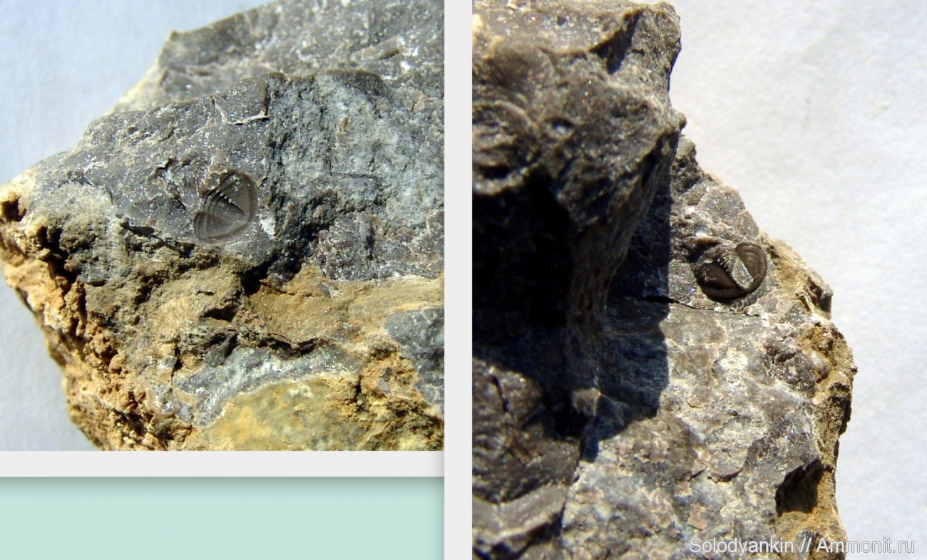 А вот собственно и брахиоподы с реки Демид.Фото Сохранность конечно очень удовлетворительная, скорее тут раковинного вещества не осталось и мало что можно извлечь для определения. Однако на сколе одной из створок (нижнее фото на коллаже) видны обороты ручного аппарата и вершинами этот предполагаемый конус обращен к спинной створке, а такое положение характерно для отряда Atrypida. Стало быть породы вмещающие не моложе девона. | ||||||