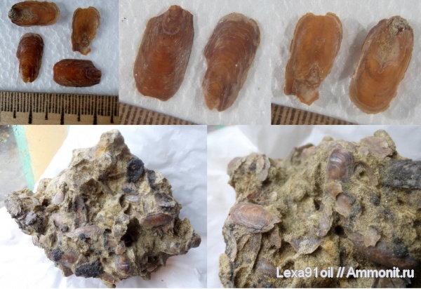 Хорошие образцы! А порода их заключающая - сцементированный песчаник, из литоральной зоны, где в основном и обитали лингулиды. Вполне возможно, что раковины захоронены недалеко от места своего обитания. | ||||||