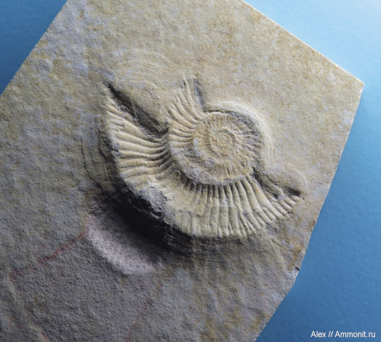 На этом фото экспонат из музея Bürgermeister-Müller-Museum в Германии - фрагментарная раковина аммонита и ее отпечаток на морском дне. Раковина ударилась о дно вентральной частью жилой камеры и упала на бок, сразу под раковиной виден отпечаток ее вентра. Никаких следов мягкого тела аммонита рядом с раковиной нет, вероятно, его в этот момент в ней уже не было. Сопроводительная табличка к этому образцу.