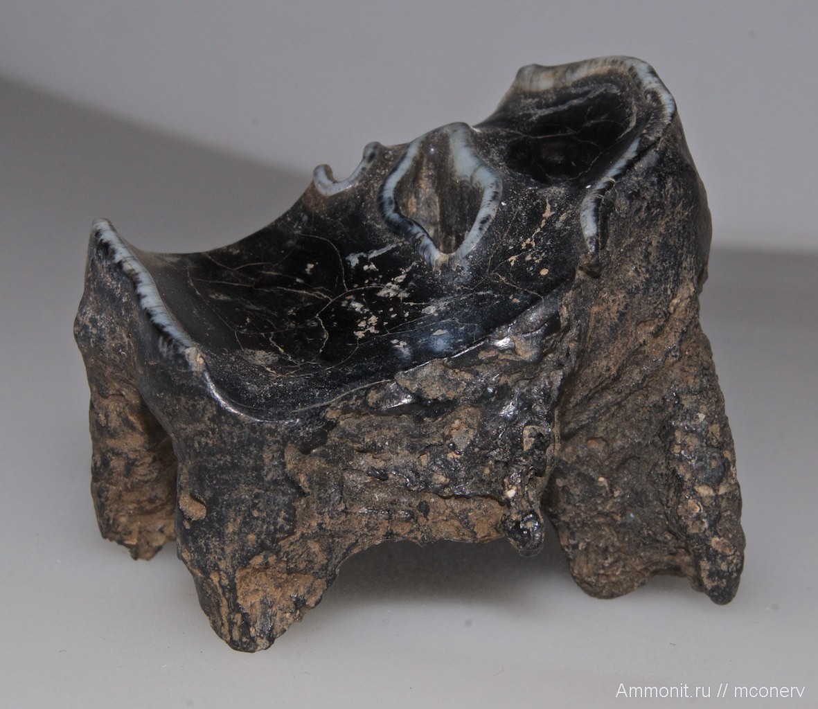 Сильно стертый зуб верхней челюсти шерстистого носорога. Найден в паре метров от предыдущего Зуб носорога
