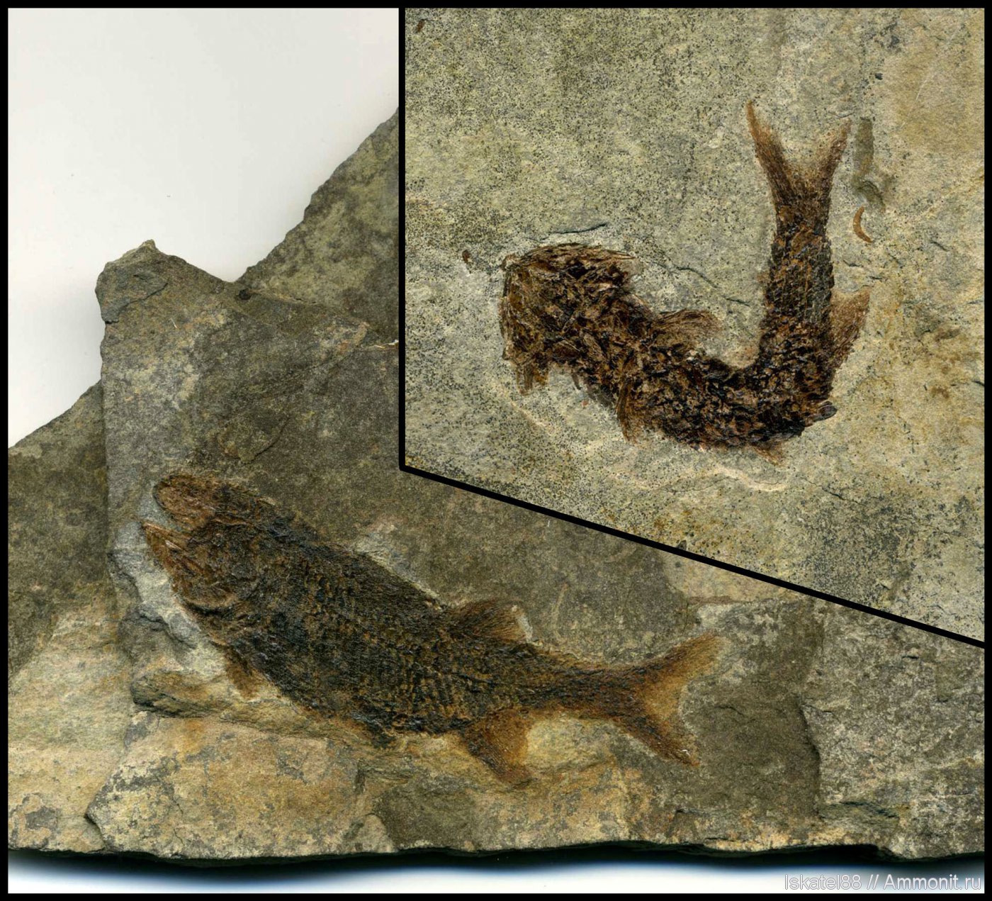 Пара представителей ихтиофауны Северо-Минусинской котловины. Назаровский район, Красноярский край. Нижний карбон, граница с девоном. Образцы приобретены на выставке.
