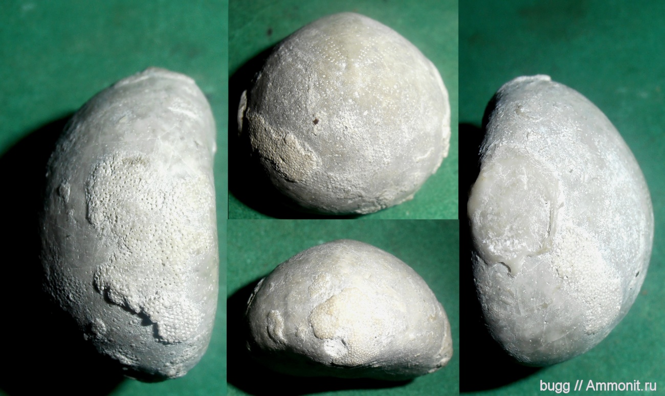 Ежик Echinocorys -3,5 см в диаметре.Но при небольшом размере панцирь стал субстратом для мшанок и еще чего-то(фото 4).Маастрихт, Белогорский р-н.