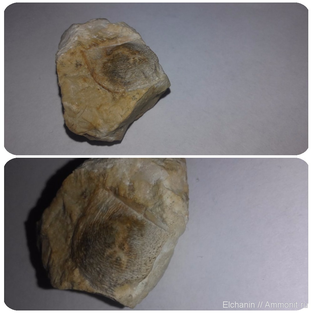 Это не моллюск, а спинная створка брахиоподы, вероятно, из продуктид. | ||||||