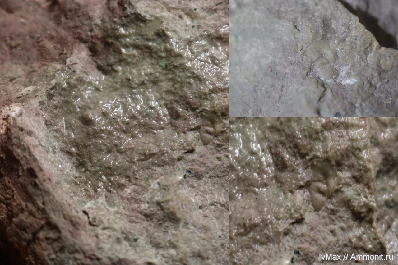 это гипостома Lichas (Metopolichas в данном случае). на фото - край, примыкающий к цефалону - внизу, видно только левое крыло и серединное тело | ||||||