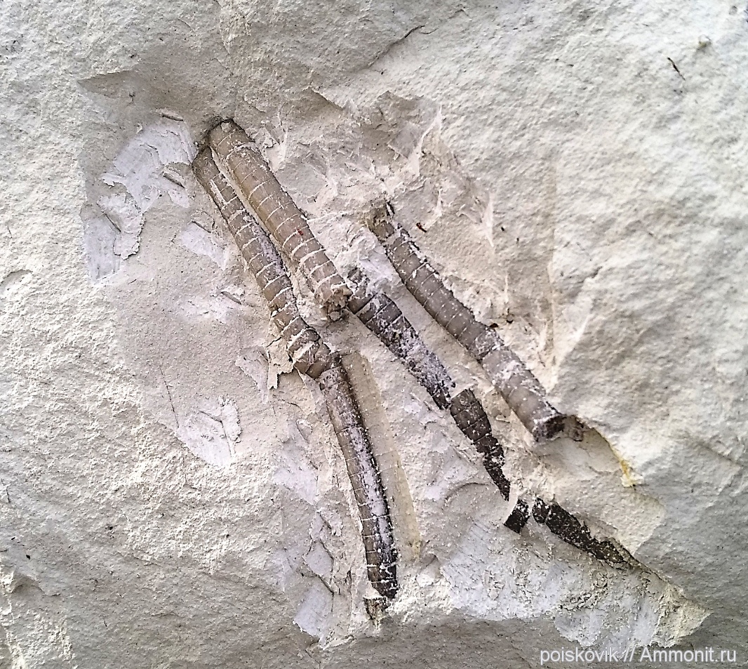 Стебли морской лилии (диаметр до 5 мм)в верхнемеловых мергелях.