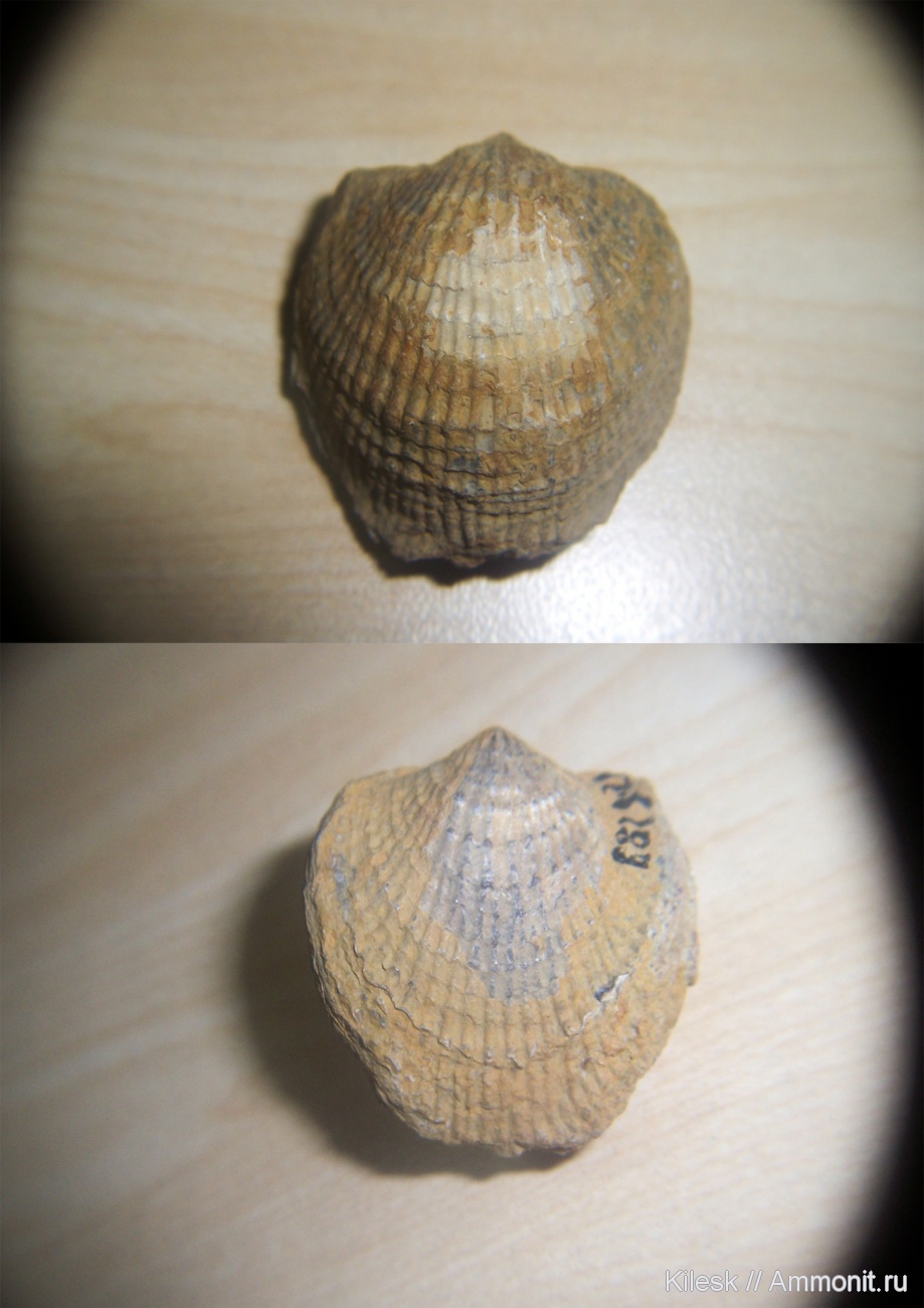 Эта брахиопода - подарок студента ПИНа заместителю директора моего лицея Н. Н. Потапову. Сама брахиопода была найдена в Таджикистане, размер - 3 см.
