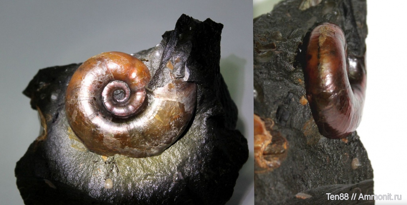 Большое спасибо, Ира! :) Да, свет разный и разный угол освещенности. Такие перламутровые под разным светом разным цветом :) Вот показательный пример, от Гали был такой перламутровый подарок Kosmoceras из Михайлова . Аммонит один, а выглядит по разному. :) | ||||||