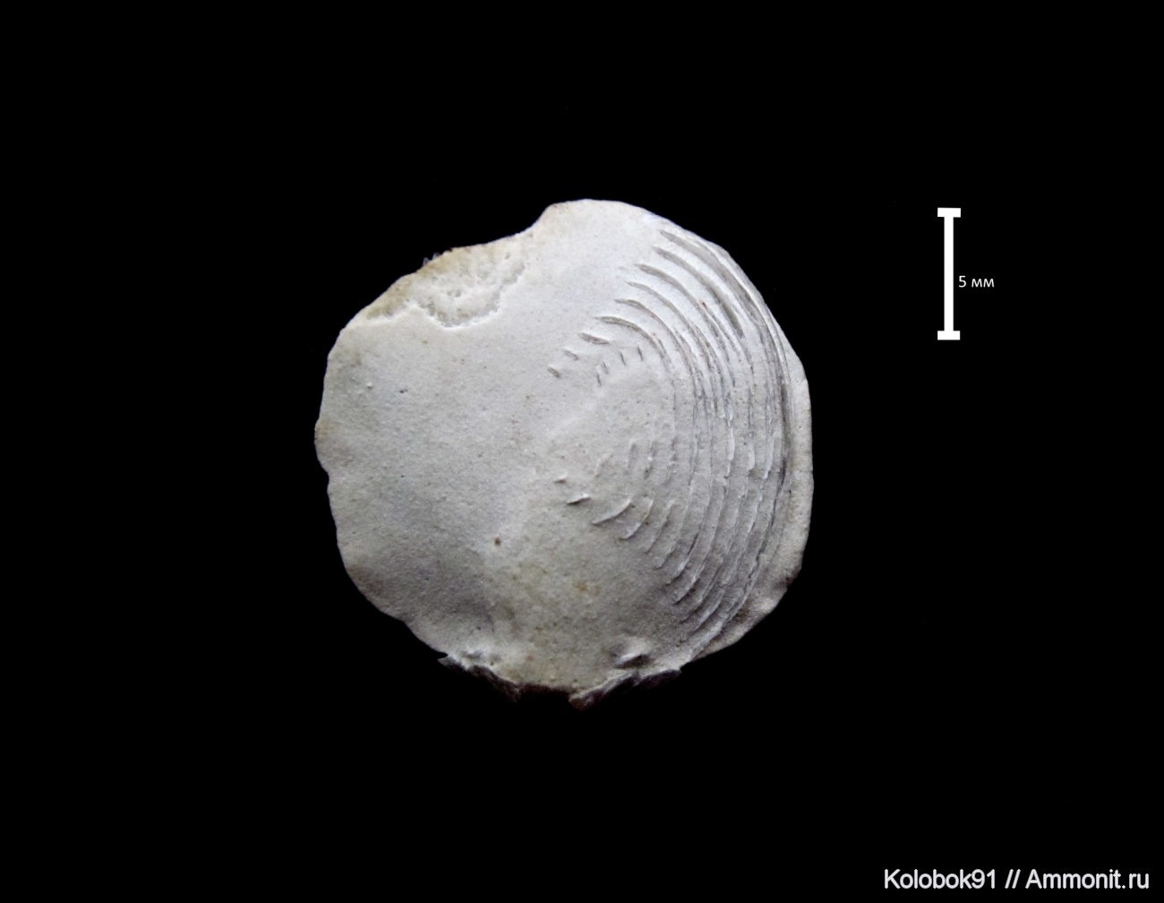 На этот раз препарация не природная. Интересно, что ручной аппарат сохранился только с одной стороны. Диаметр раковины 2Х2 см.