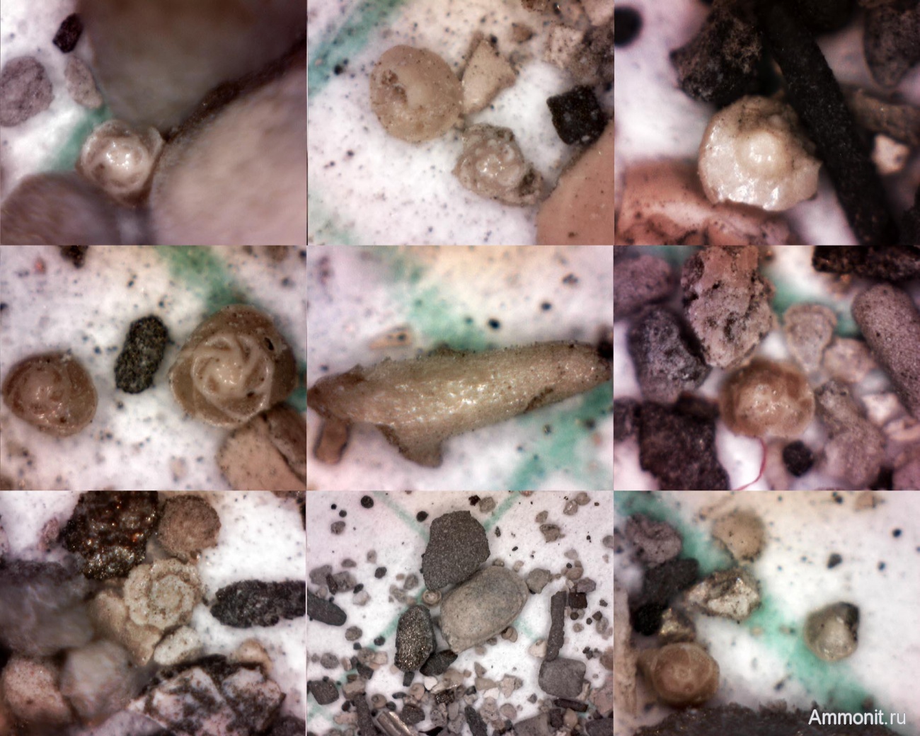 Внизу в центре раковинка остракоды. А вообще это фото - панорама :)) Это же та глинка, что Вы в конверте прислали, уже отмытая :)) | ||||||