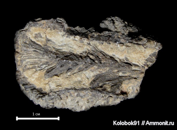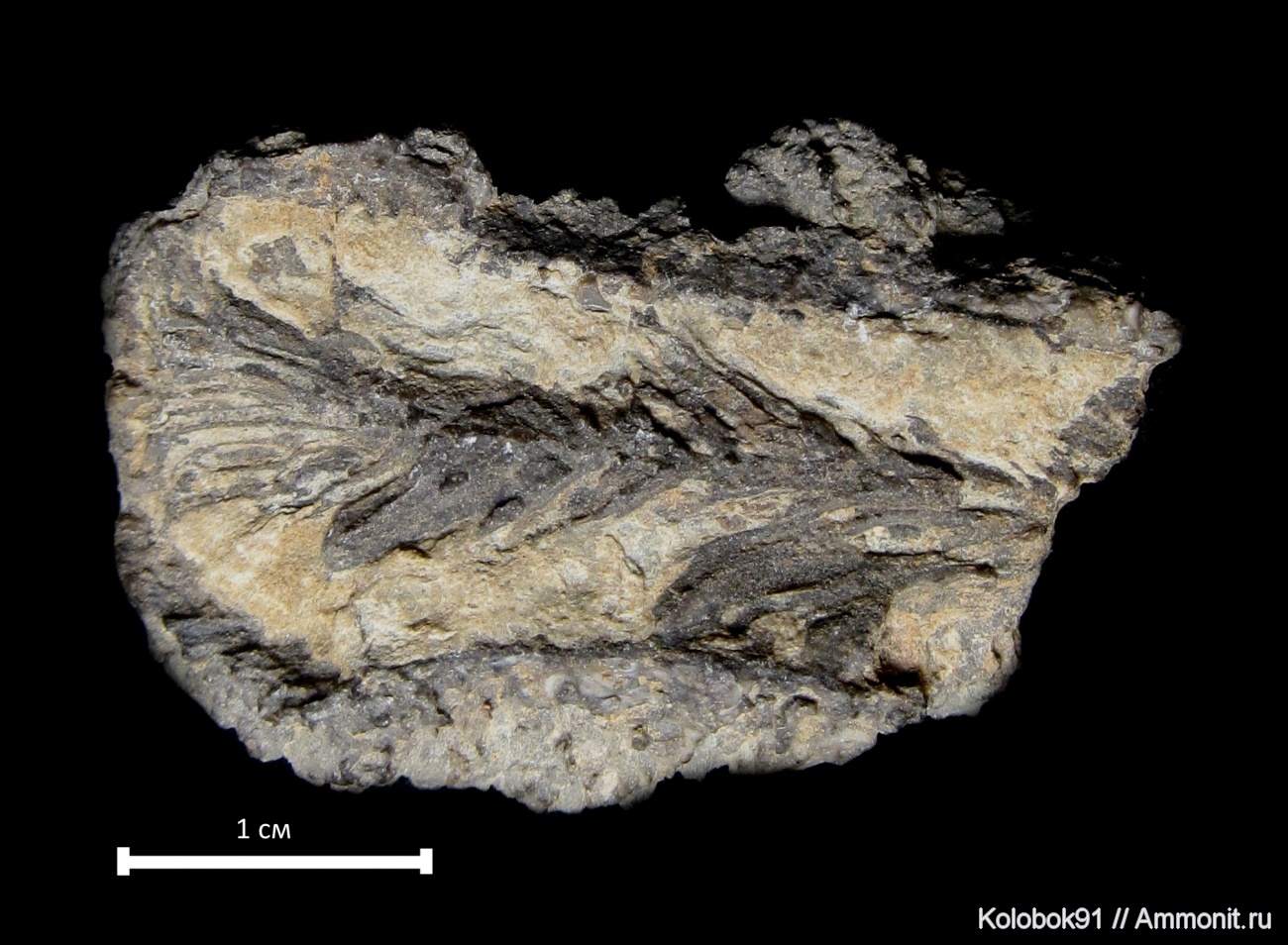Предположительно фрагмент веточки. Найдена на склоне в осыпи. Из сопутствующих находок кораллы, губки, морские ежи, лилии и очень много дерева. Возраст Келловей/Оксфорд. Длина самой ветки 3 см.