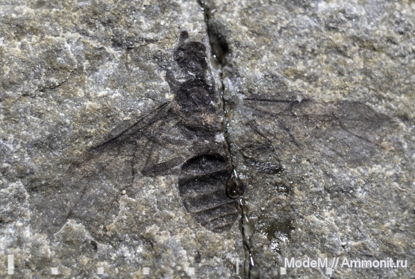 В этот раз Пшеха порадовала не только рыбами, но и отпечатками насекомых. К сожалению, отпечаток раскололся и был склеен, а противоотпечаток оказался менее выразительным. Окрестности Цуревского.