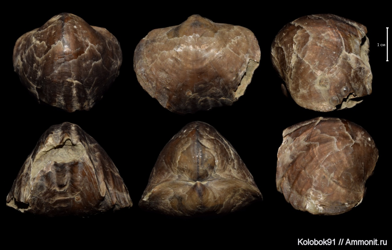 В книге Марковского представлена продуктида: https://yadi.sk/i/gEHvbqw23HEhu2 и https://yadi.sk/i/nk2-WGuq3LB5oC Cyrtospirifer в приросшем прижизненном положение т.е. подразумевается найти продуктиду любого размера на створке любой брахиоподы (во всех случая на сайте представлена только одна приросшая створка и то фрагментарно). Но эта задача не из простых, продуктиды из-за шлейфа обладали высокой парусностью и при переносе больше всего разрушались. | ||||||