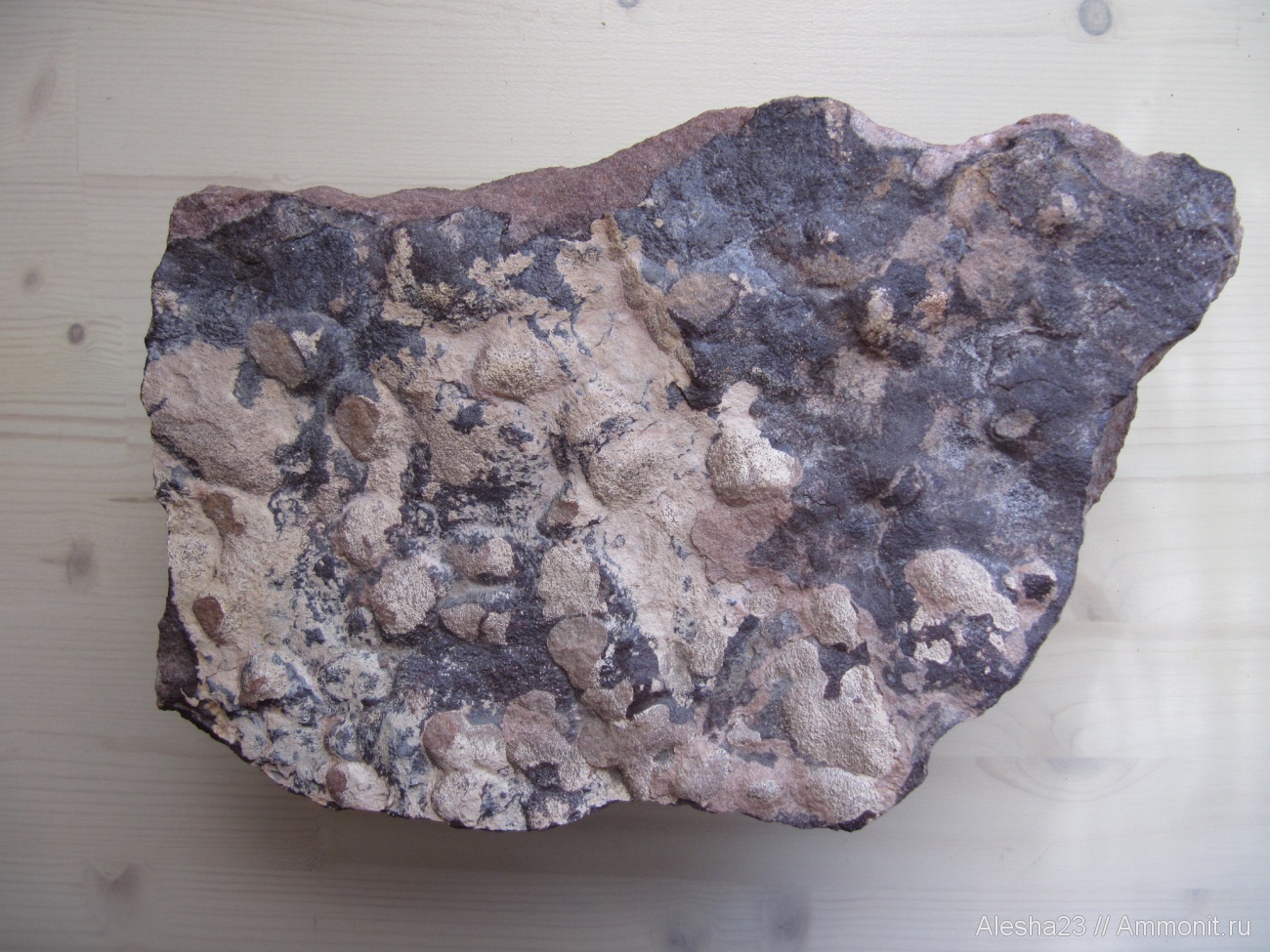 Докембрий, Шокшинская свита, 1,8-1,65 млрд. лет, цианобактериальный мат. Неопределенные округлые образования.