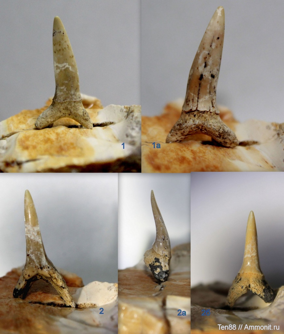 №1 - если наблюдается струичатость на коронке с лингвальнои стороны-то это стриатоламия точно. №2 - наверное кархариас,просто боковые зубчики не сохранились да и корень немного поврежден,по-этому так.. | ||||||