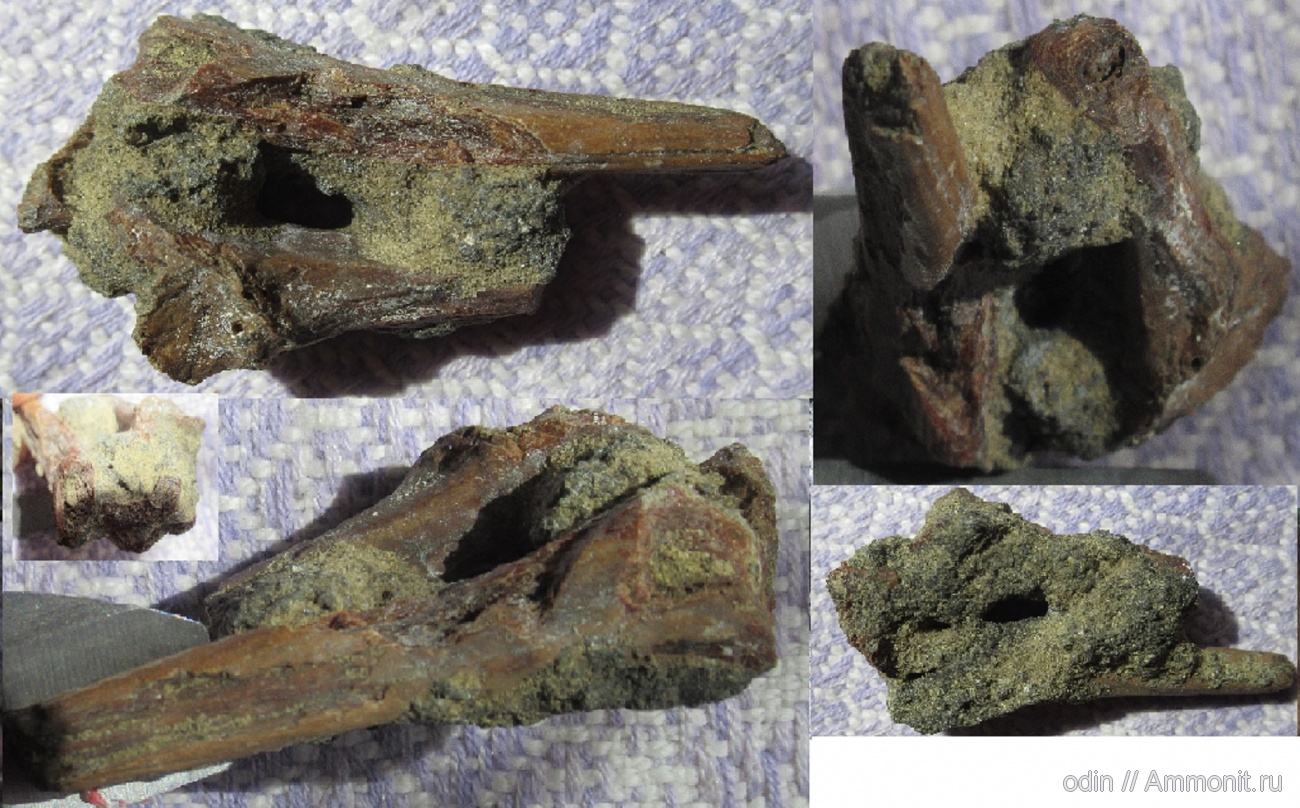 Хорошие косточки. однако не припомню чтобы кости конечностей были остроконечными. Это могут быть детали отростков позвонков. Насчёт рептилий вопрос пока открытый, это могут быть детали костистых рыб. | ||||||