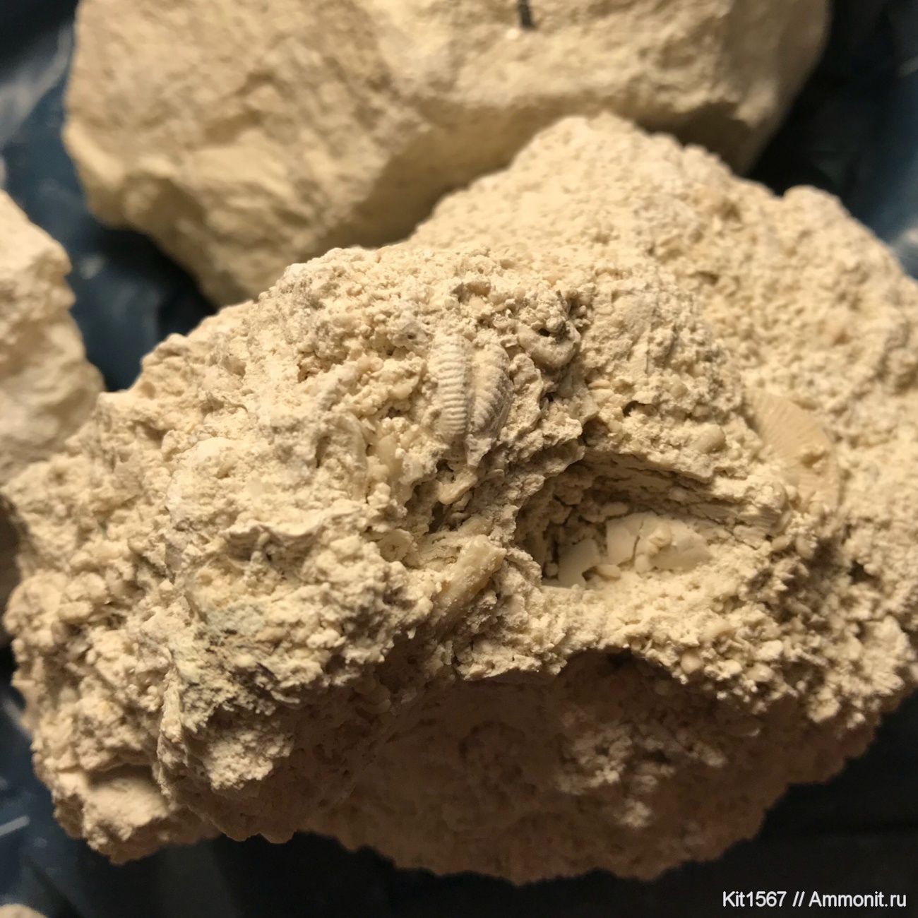 Решил приобщить нескольких своих хороших друзей к палеонтологии и не нашёл ничего лучше кроме как отвезти их в Пески. На карбоновых отвалах в фузулиннике пытались искать зубы рыб, однако вместо них наиболее усидчивый и внимательный из моих друзей обнаружил в нём это чудо. Через некоторое время был найден ещё один такой же.