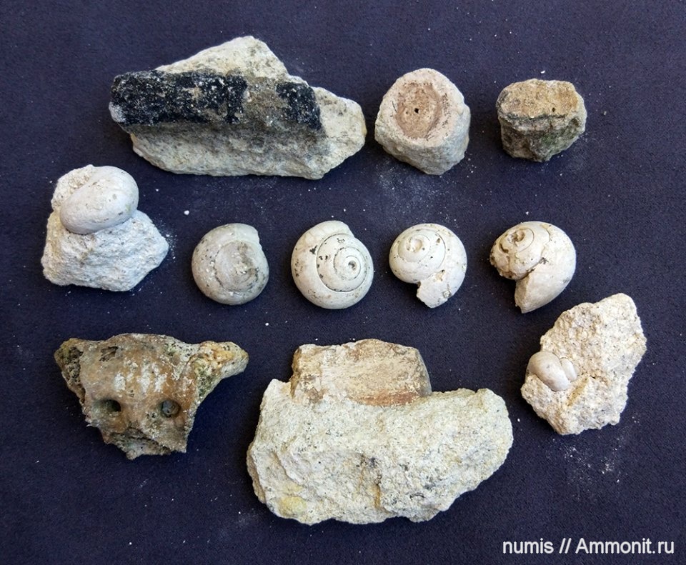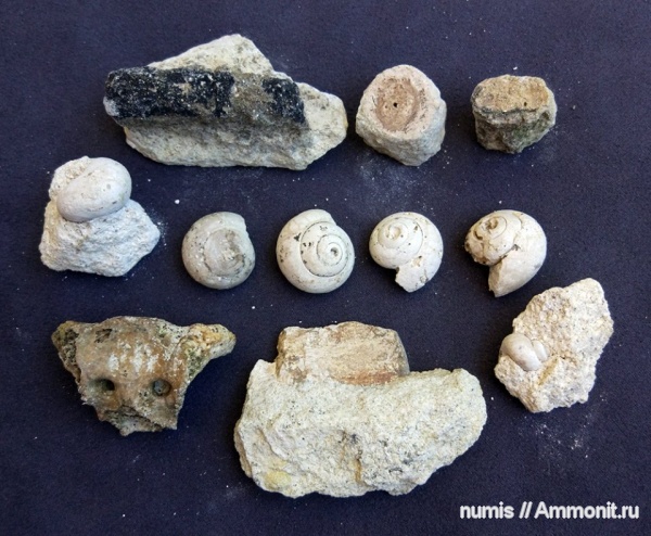 Фрагмент крестца тюленя, Неоген. Гастроподы. Окаменевшие растения.