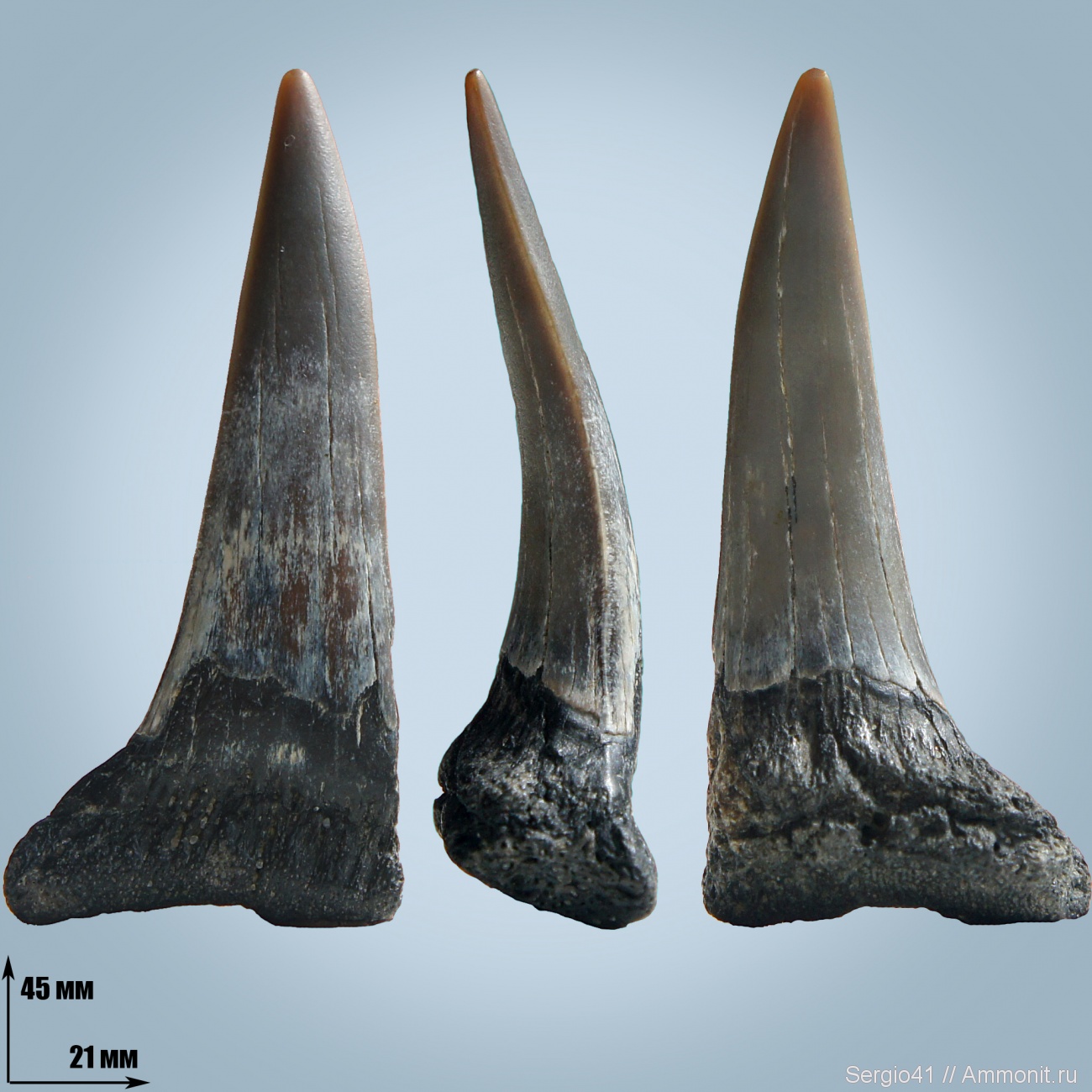 Говорят очень редкие в палеоцене, но мне на них везет. Это уже четвертый и на этот раз передний. Крупный. С отломанной половинкой корня. Но у передних он и так в разы меньше чем у боковых. Кстати, реликтовыми их назвали из за плоского строения корня, который был распространен у значительно более древних акул.