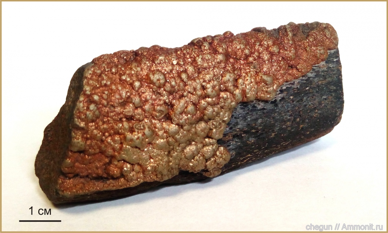 Фрагмент ребра водной рептилии. Найден в мае 2018 года на берегу р. Волги в районе поселка Городище Ульяновской области. Природа украсила "золотом", как искусный ювелир :) Дополнителье ракурсы.