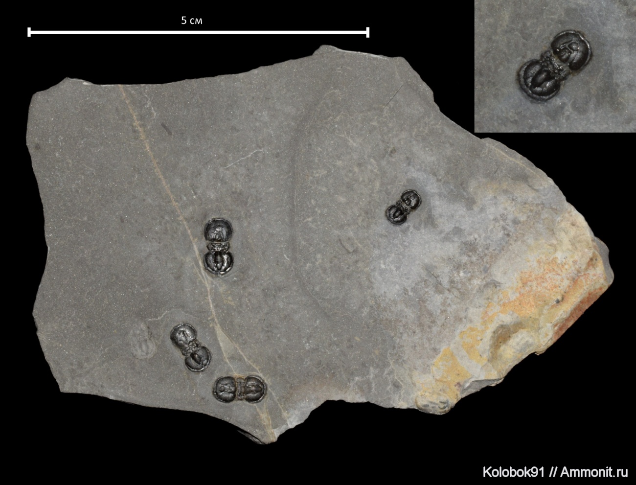 Ширина плитки 8 см. Длина трилобитов от 0.6 см до 0.8 см.