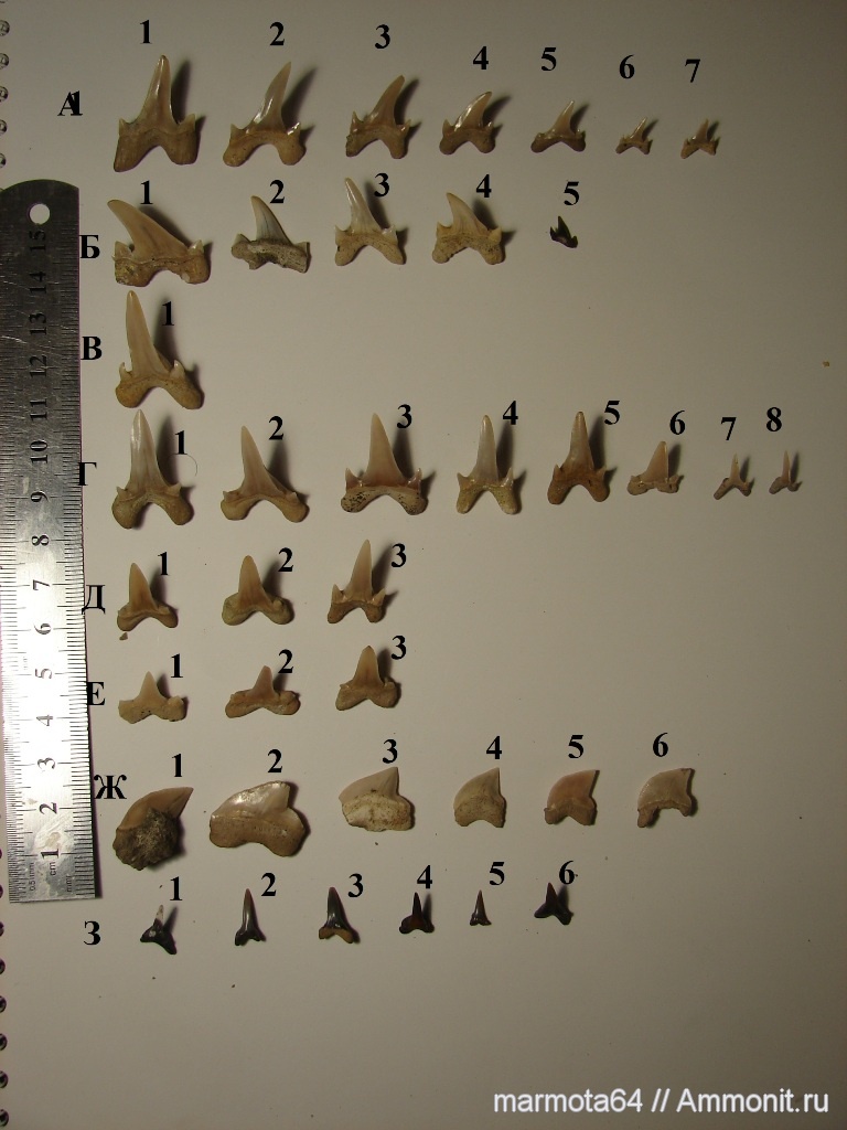 A1, Б1-2, Г1-2,6, Д1-2,Е(все) - Cretolamna cf. borealis/sarcoportheta.