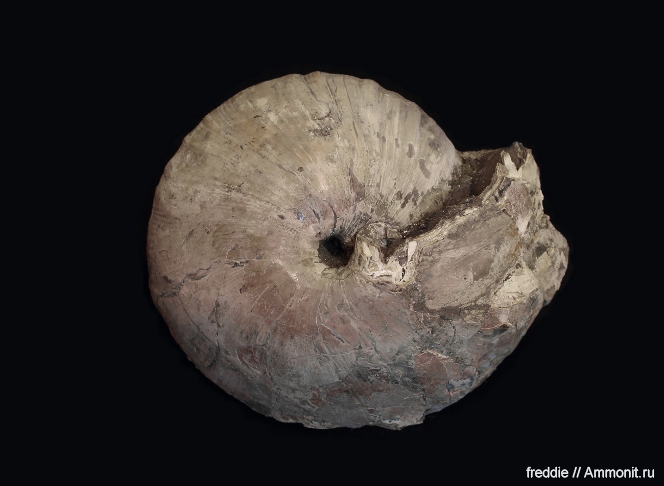 Впервые мне попалась столь широкая в сечении форма (вероятно переходная форма от С.subpatruus к C.uzhovkensis) При максимальном размере раковины в 15,8 см, ширина в сечении составила 12,6 см. К сожалению, одна сторона оказалась довольно сильно деформирована. Фото вентральной стороны.
