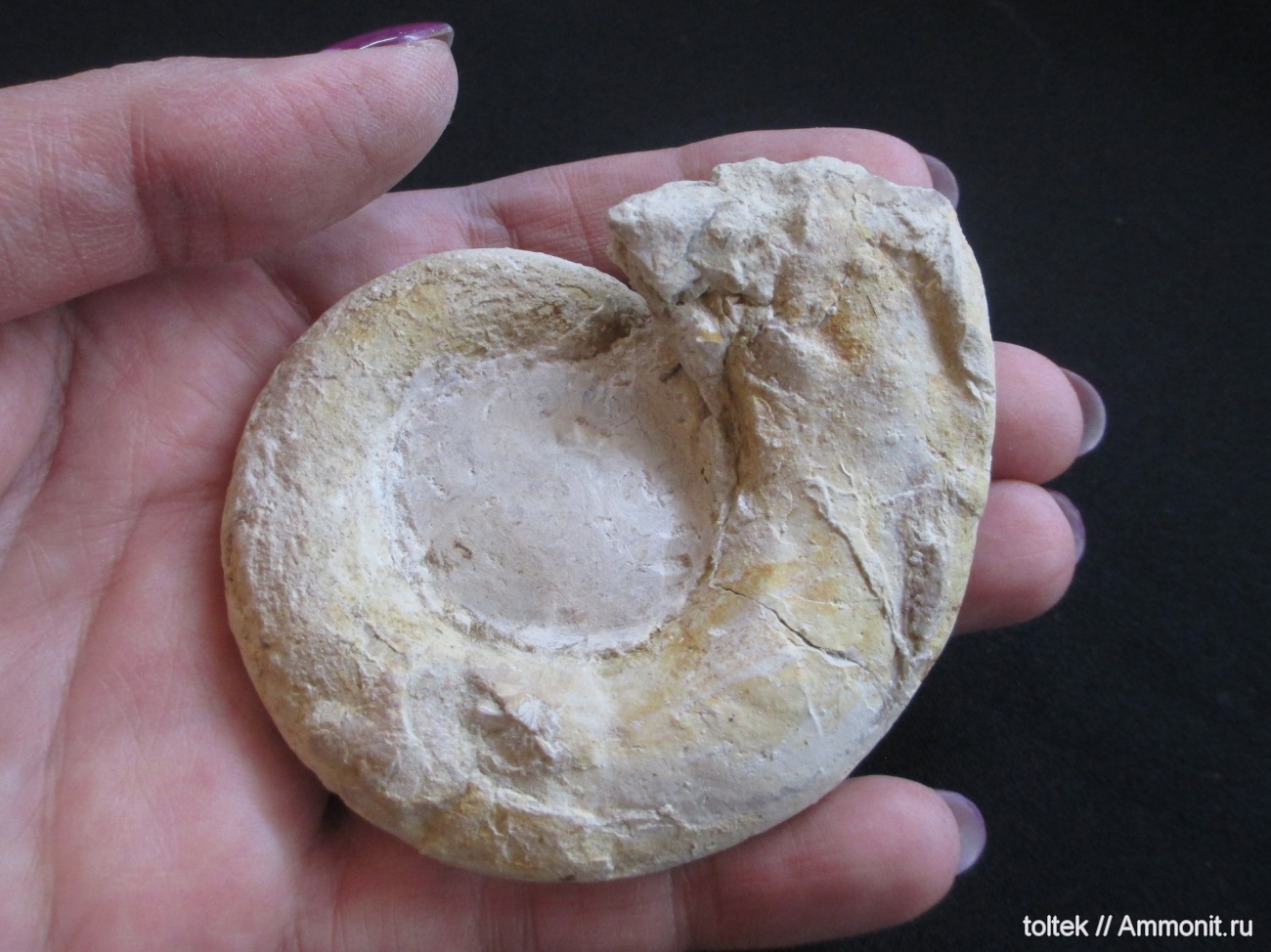 Самая крупная гастропода (ядро), найденная мною на просторах девонского моря. К сожалению, в свое время осадки попали только в часть оборотов раковины, поэтому пупка нет.