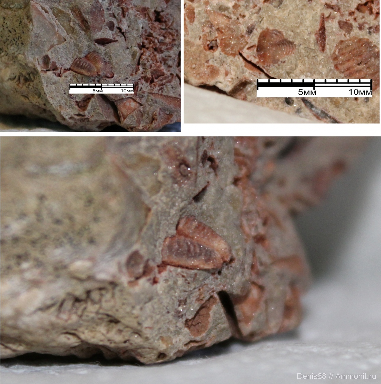 Нечастая находка в нижнекаменноугольных отложениях Ленинградской области– пигидий трилобита. Найден в апреле 2018 г. на р. Рядань, в тарусском горизонте. Не без помощи специалистов определен как Paladin mucronatus .Ширина пигидия около 7 мм, длина выступающей из породы части – 3 мм, высота – 2 мм. Примерно 12-14 колец рахиса, не менее 8 плевральных ребер. Краевая кайма около 1 мм шириной. На противоотпечатке виден терминальный шип.