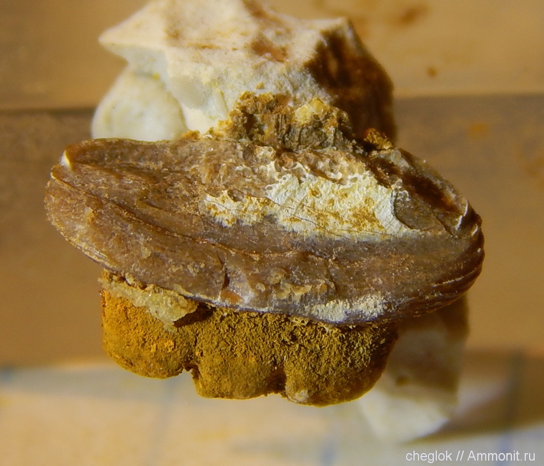 Пару недель назад взял сына в Заборье. Юный палеонтолог сразу сделал воистину уникальную находку -- плитку из протвинского горизонта (его характеристику дал присутствовавший при находке Вячеслав Ляпин) с зубом. Зуб я благополучно вытравил, на мой взгляд Polyrhizodus. Размер 13 мм в ширину.