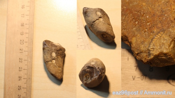 На мой взгляд больше геология нежели палеонтология. Кремневая конкреция? Поправьте товарищи. На крайнем правом фото, да останки органики. | ||||||