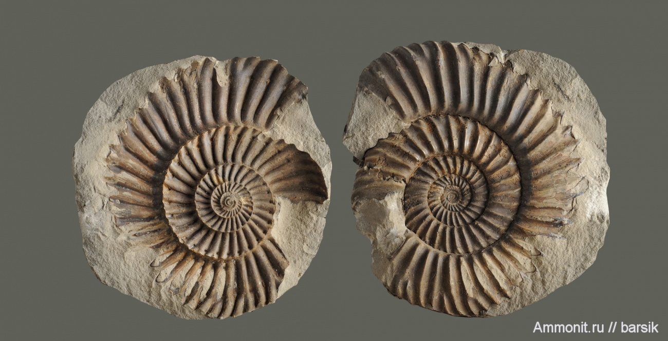 Это очередное ядро раковины аммонита рода Rarecostites подсемейства Parkinsoniinae из ниж-