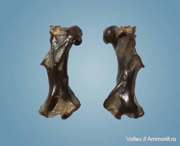 Посему хотелось слегка исправить эту ситуацию за счёт одной из "свежих" находок этого года - плечевой кости выхухоли, предположительно рода Desmana sp. из плейстоценовых пресноводно-аллювиальных отложений Ногайска. Могу ошибаться, но вроде как это первое насекомоядное, представленное тут. Размер кости - 2,4 см.