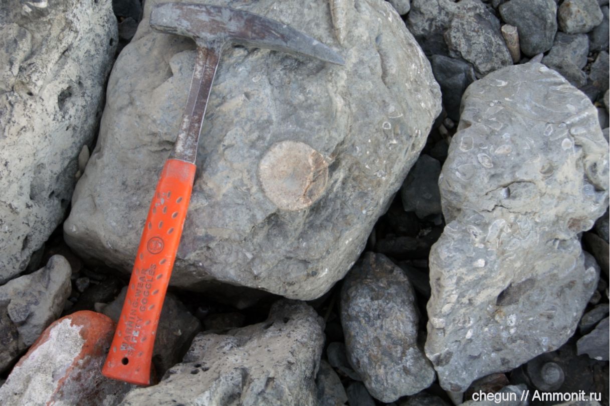 Найден в мае 2018 года на берегу р. Волги в районе поселка Сланцевый рудник Ульяновской области.