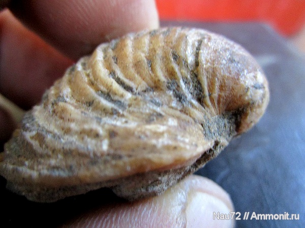 Породу с нижней стороны раковины не рискнул удалять.Раковина сохранилась абсолютно целая и-родная,и слишком большой риск разрушить ее,удаляя породу.