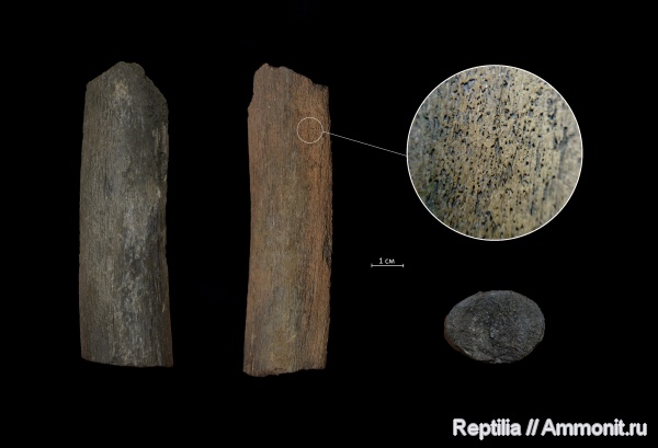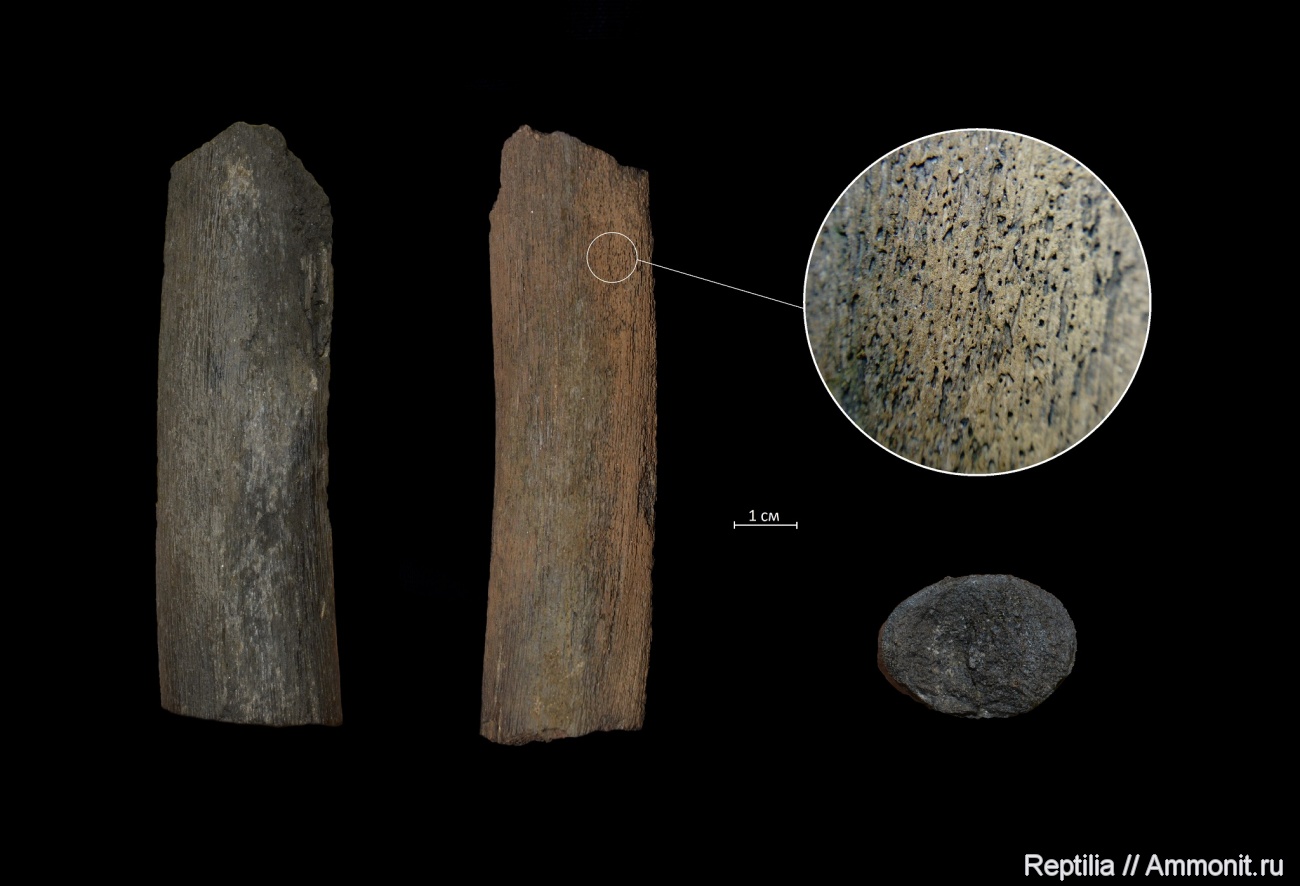 Довольно крупный обломок ребра завра с сохранившейся структурой.