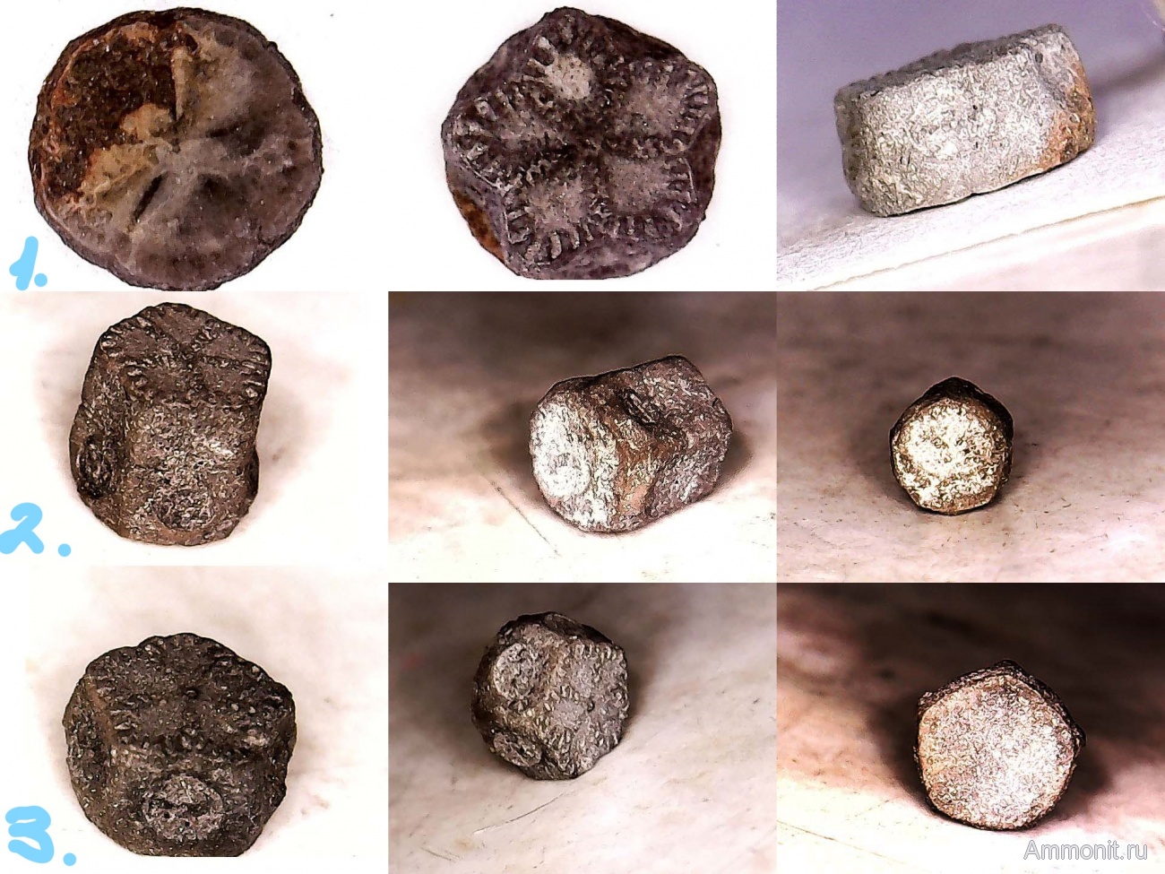 Форма изменялась в плане шире-уже, толще-тоньше, в месте соединения стебля и чашечки, ветвления корней ( и такое есть ). Как я вам в личке говорил чередование через 3-5 члеников большой и округлый с мелкими и более угловатыми. Если есть эл.почта я Вам могу отправить сканы французских таблиц по иглокожим. | ||||||