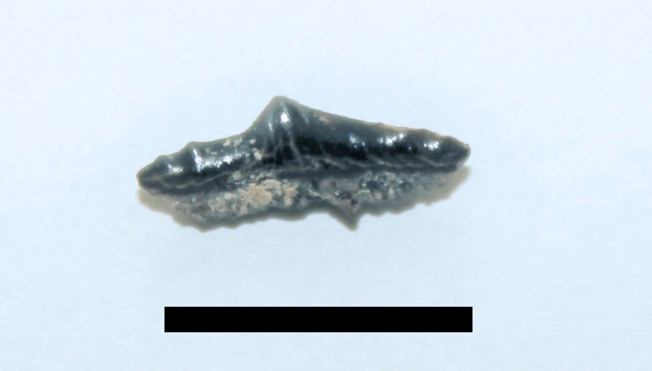 А вот и экзотика - полиакродус с корнем. Аналогичные образцы из Канева были описаны Роговичем в 1860 году как Hybodus bidentatus, так что после ревизии его коллекций правильнее будет называть этот вид Polyacrodus bidentatus. Но пока что это Polyacrodus sp.