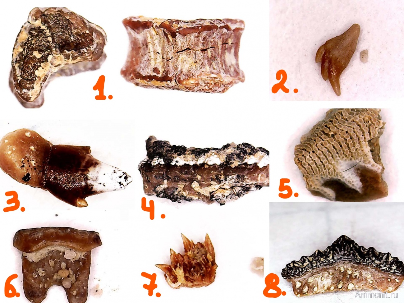 Этот коллаж получился чётче других. Все находки отличные,но самая уникальная без споров-№1,это позвонок на 98%,ибо вид слева не очень детальныи,я так понимаю,что там нет надломов с края? Если он целый,то это врожденныи дефект наверное,располовиненныи какои то,такого в и-нете не видел ни разу. Его бы отдельно видеть и в 6 ракурсах осн. | ||||||