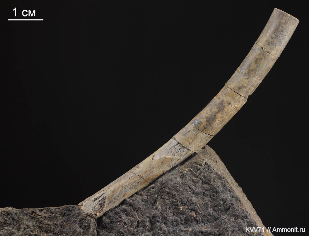 Предположительно ребро водной рептилии. Средняя часть. Образец эстетической ценности не представляет. Но это первая и пока единственная находка кости в нижнем байосе Дагестана, во всяком случае на май этого года.