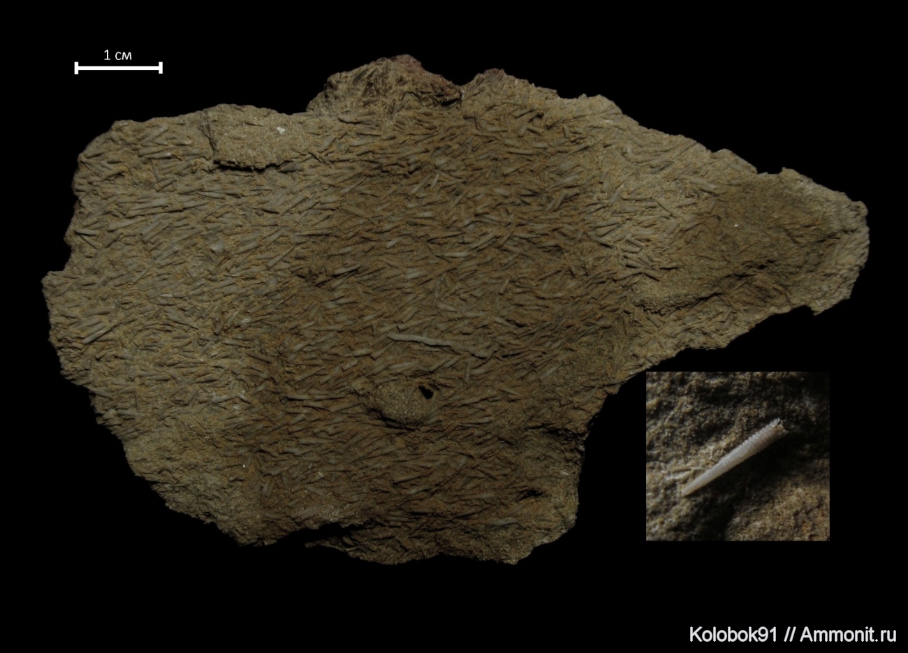 Тентакулиты достаточно частая находка в Воронежском и Липецком девоне, но такое скопление встречаю впервые. Раковины образуют сплошной слой, толщиной до 3 см.