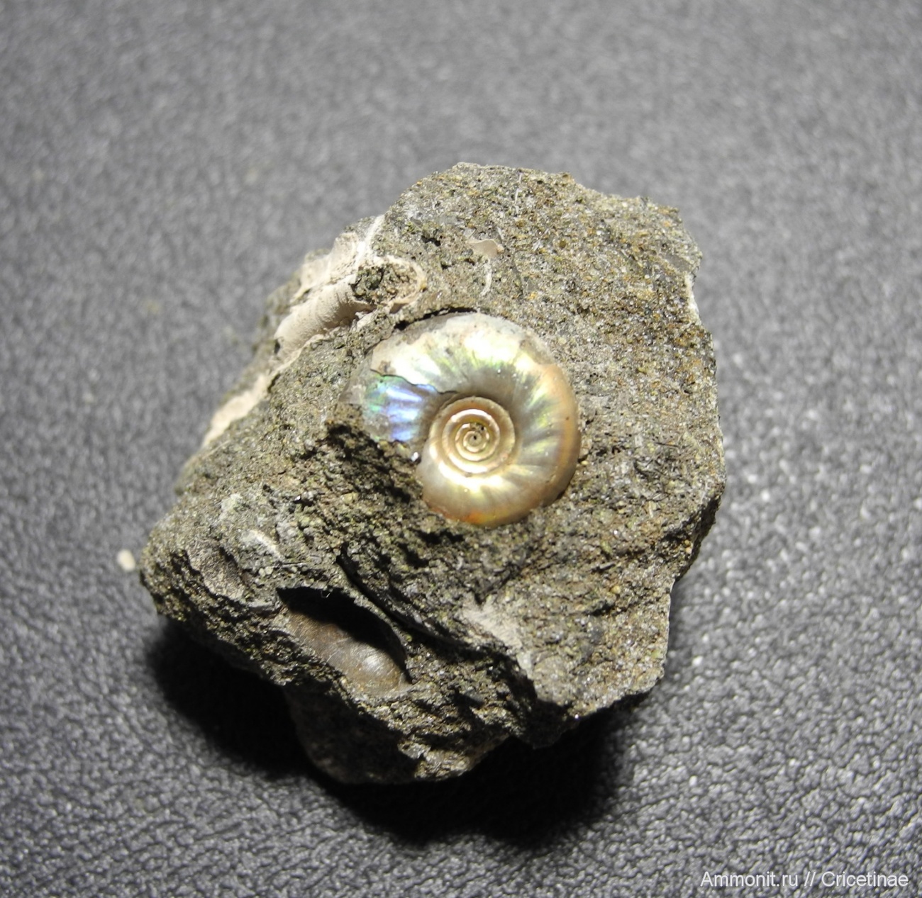 Маленький, но очень хорошей сохранности аммонит Garniericeras. Размер 1 см.