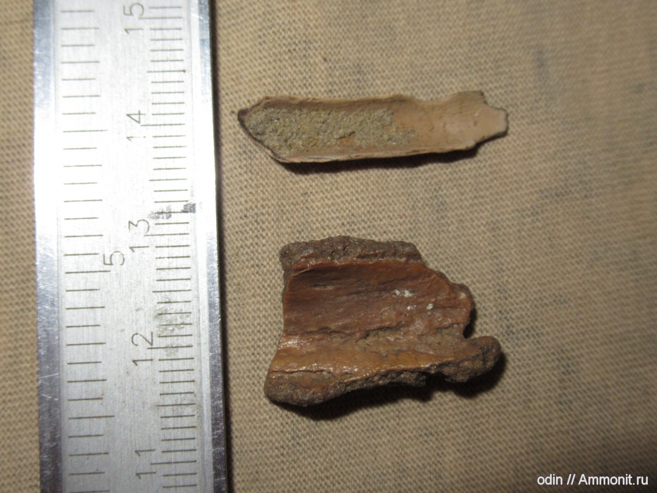 Точно не камень. В Малом Проломе полно таких образцов с намертво приклеенным снаружи песком. Несколько раз пробовала отмочить и удалить этот песок. Но он отходит со слоем то ли кости, то ли дерева. Мне показалось, что это больше похоже на дерево. | ||||||