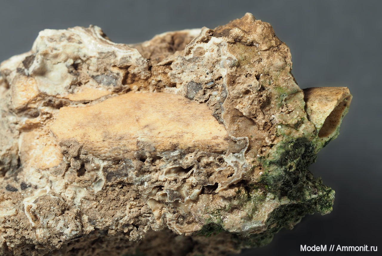 Вот такое странное место обнаружили мы у с. Хатунь Ступинского района. В известняковых стенках реки Лопасня и отвалившихся с них глыбах в изобилии встречаются остатки «пещерного» натечного арагонита, законсервировавшего остатки фауны, судя по всему, неогеновой или четвертичной. Подробне я написал здесь.