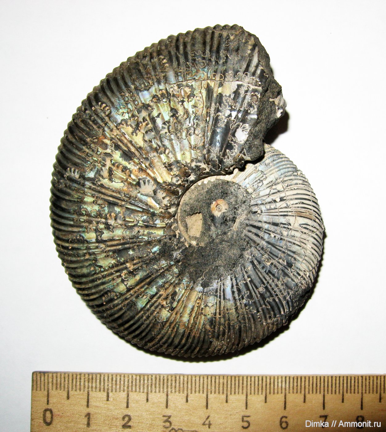 Этот аммонит был найден в Елкинском карьере (до затопления 20.05.2000) в верхней части слоя V.gerassimovi. На мой взгляд этот аммонит является переходной формой от V.gerassimovi к V.virgatus. Так же он сочетает в себе признаки обоих видов.