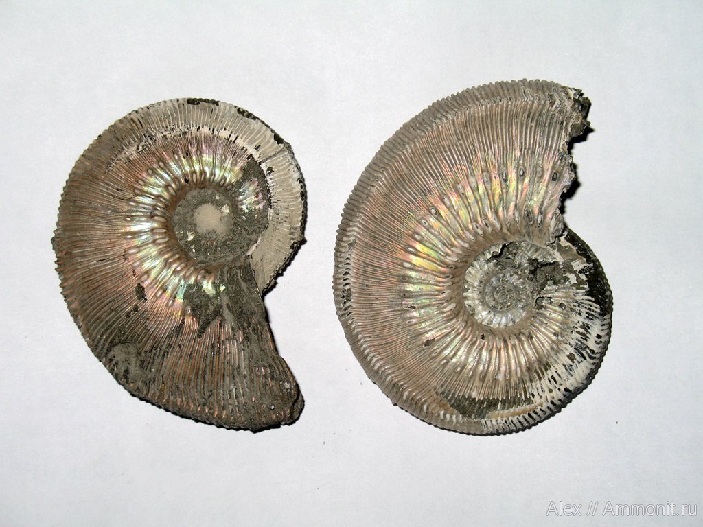 Отдельно фотографии этих аммонитов с разных сторон можно увидеть здесь Деформированный Kosmoceras phaeinum и здесь Обычный Kosmoceras phaeinum.