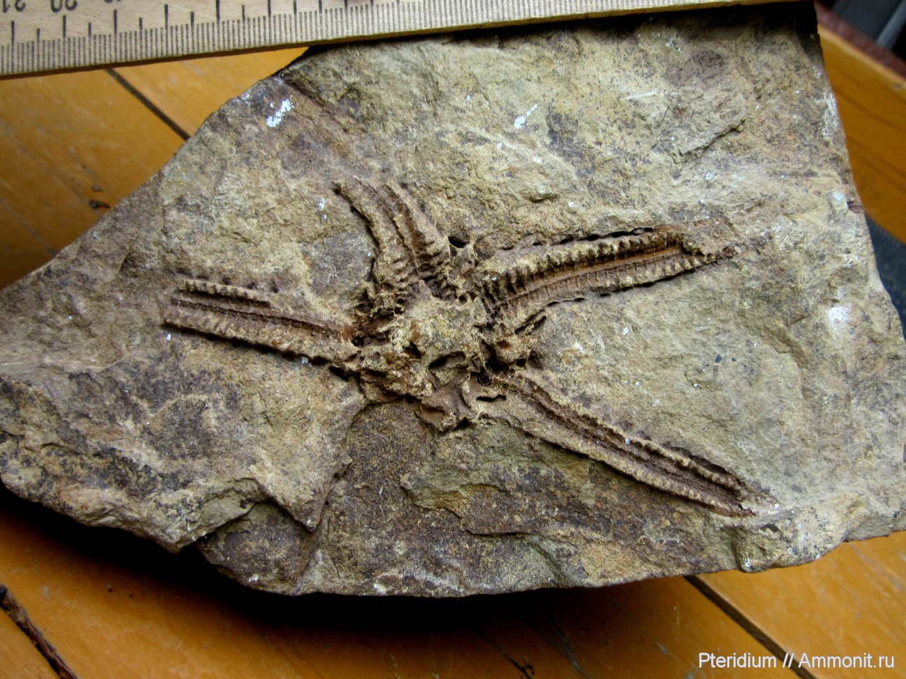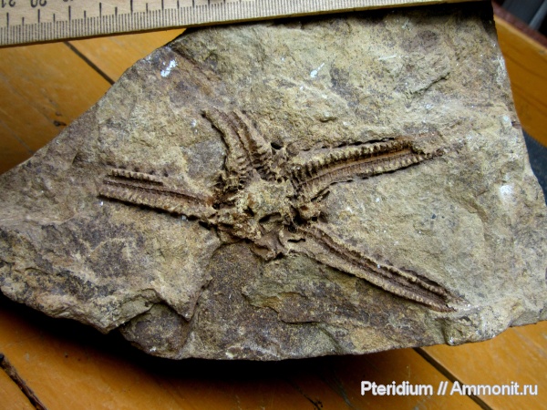 Морская звезда из артинского яруса Среднего Приуралья (коллекция Шалинского краеведческого музея, ст. Шаля, Свердловская область). Мой снимок из полевой поездки прошлого (2017) года.
