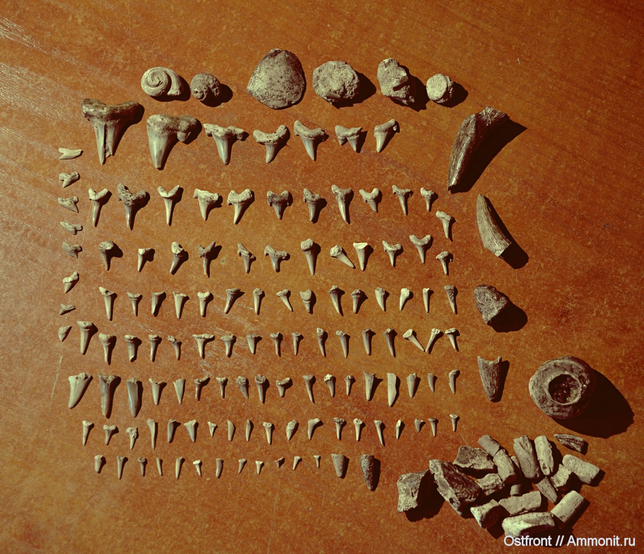 Вот и совершился мой второй выезд в "зубий" овраг, что находится в Варавино. Всего промыто 12 ведер (120 литров грунта), в итоге : 130 зубов, два из которых мои первые "завры" и один костной рыбы. Две гастроподы, косточки и прочее.